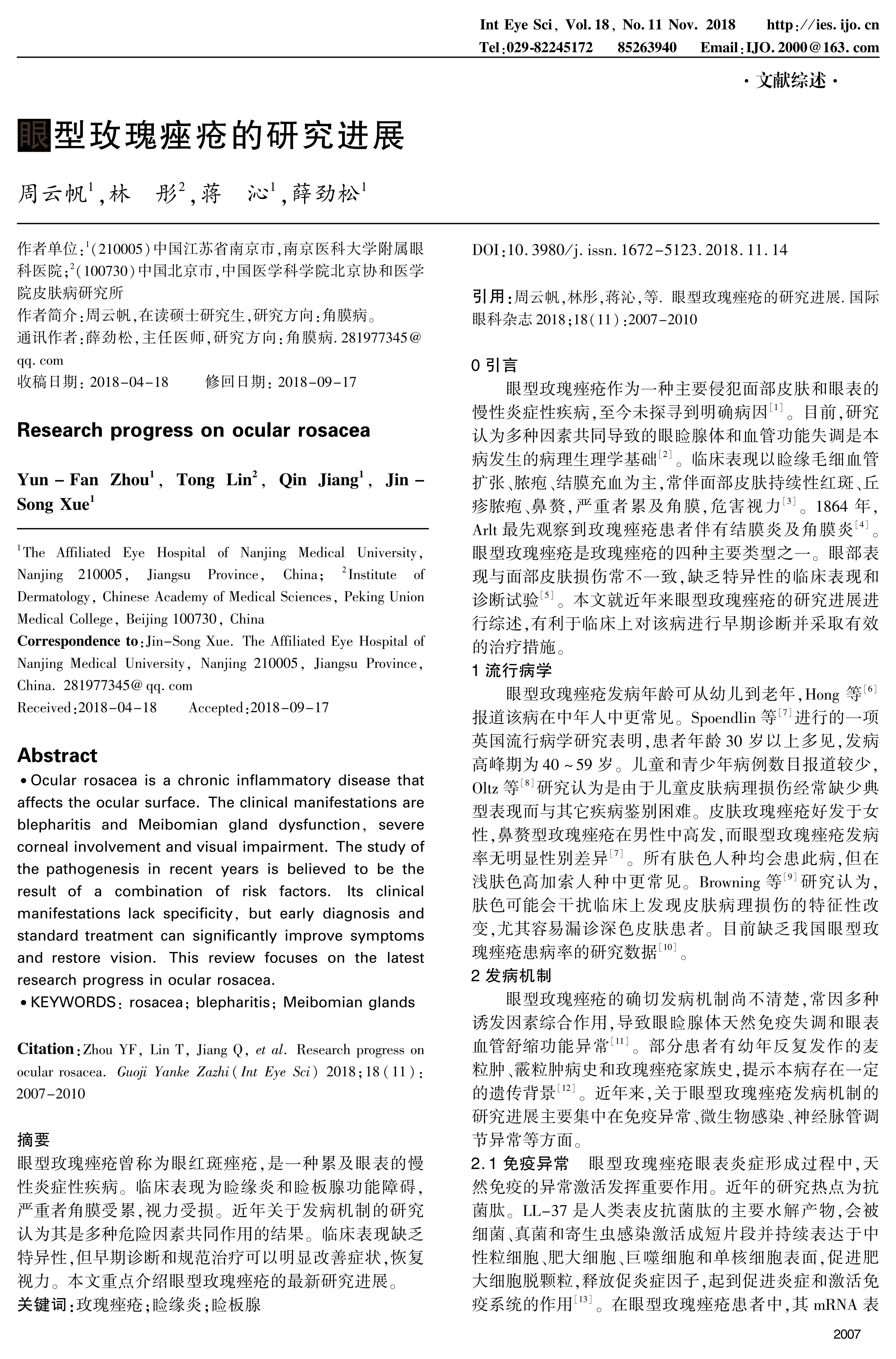 眼型玫瑰痤疮曾称为眼红斑痤疮,是一种累及眼表的慢性炎症性疾病。临床表现为睑缘炎和睑板腺功能障碍,严重者角膜受累,视力受损。近年关于发病机制的研究认为其是多种危险因素共同作用的结果。临床表现缺乏特异性,但早期诊断和规范治疗可以明显改善症状,恢复视力。本文重点介绍眼型玫瑰痤疮的最新研究进展。