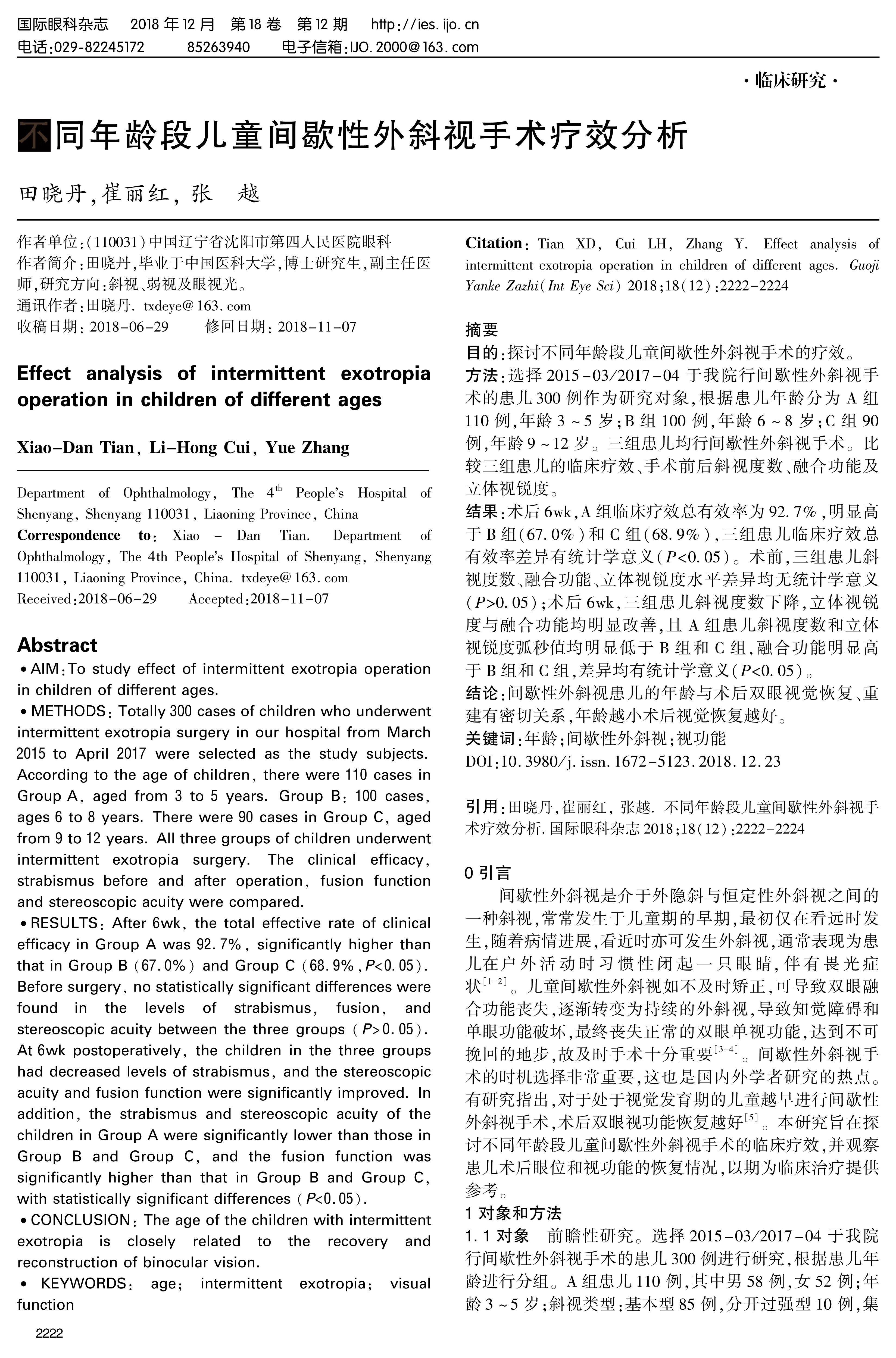 AIM:To study effect of intermittent exotropia operation in children of different ages.