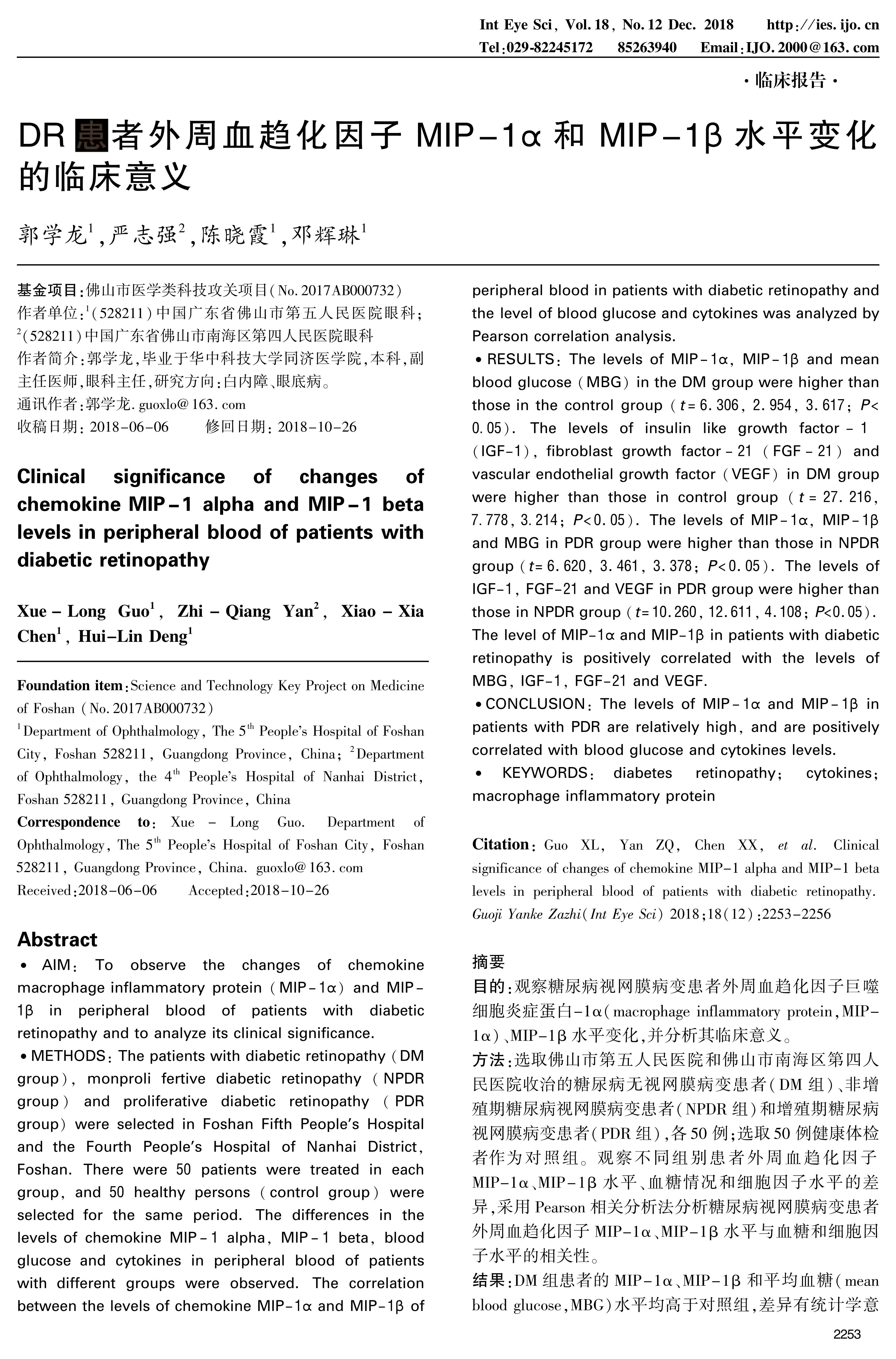 CONCLUSION: The levels of MIP-1α and MIP-1β in patients with PDR are relatively high, and are positively correlated with blood glucose and cytokines levels.