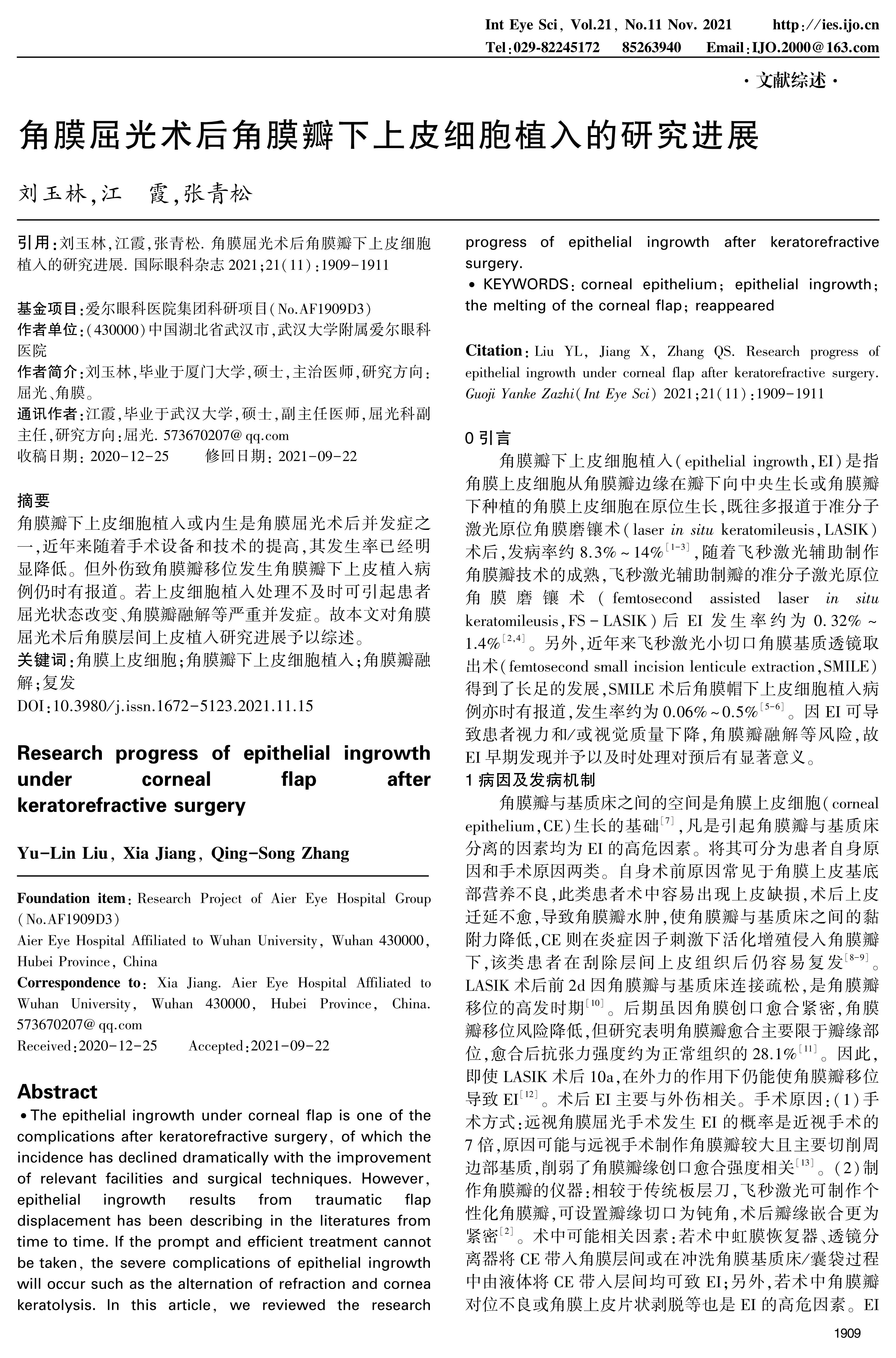 角膜瓣下上皮细胞植入或内生是角膜屈光术后并发症之一,近年来随着手术设备和技术的提高,其发生率已经明显降低。但外伤致角膜瓣移位发生角膜瓣下上皮植入病例仍时有报道。若上皮细胞植入处理不及时可引起患者屈光状态改变、角膜瓣融解等严重并发症。故本文对角膜屈光术后角膜层间上皮植入研究进展予以综述。