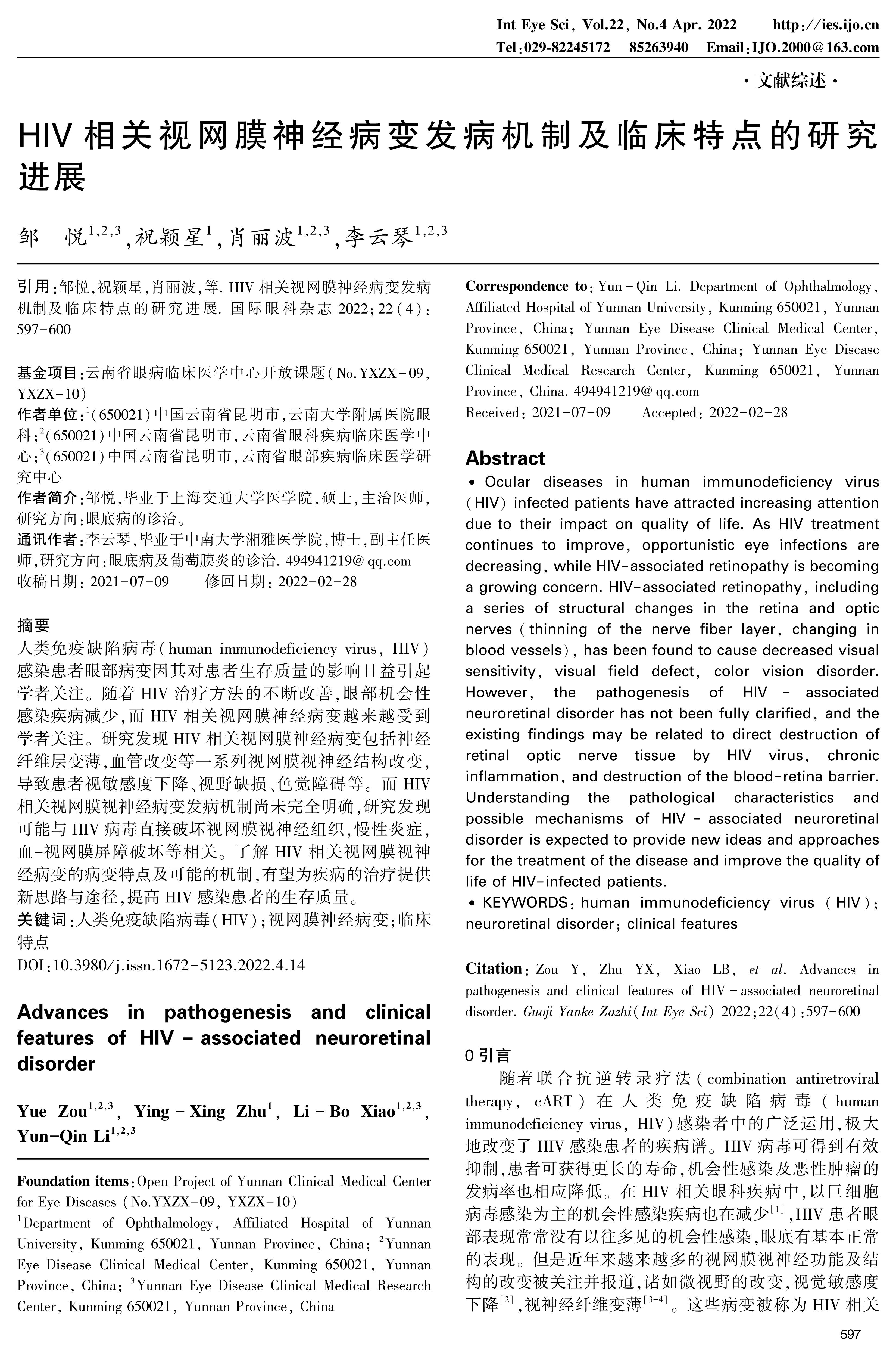 云南省眼病临床医学中心开放课题(No.YXZX-09,YXZX-10)