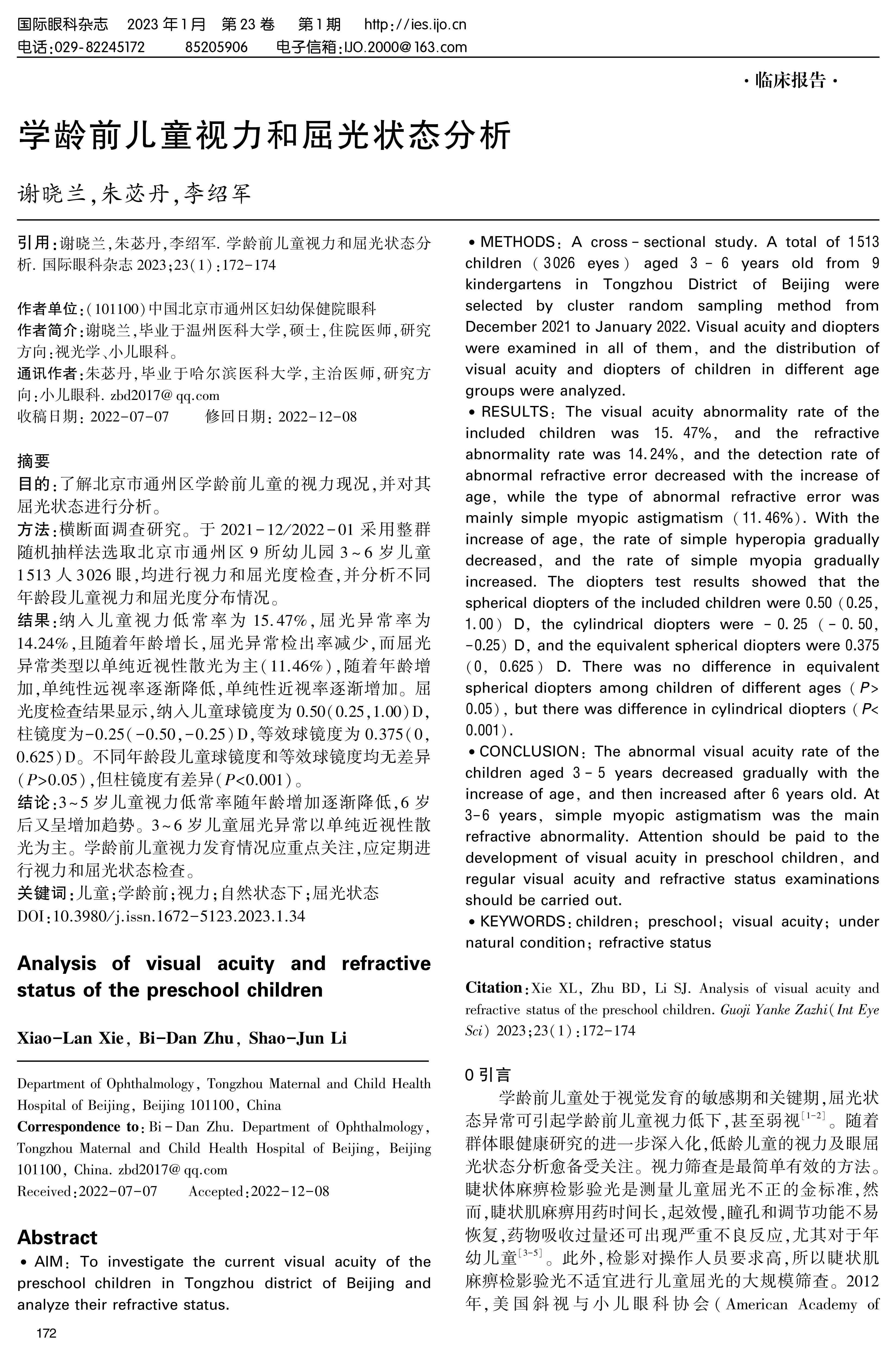 目的:了解北京市通州区学龄前儿童的视力现况,并对其屈光状态进行分析。