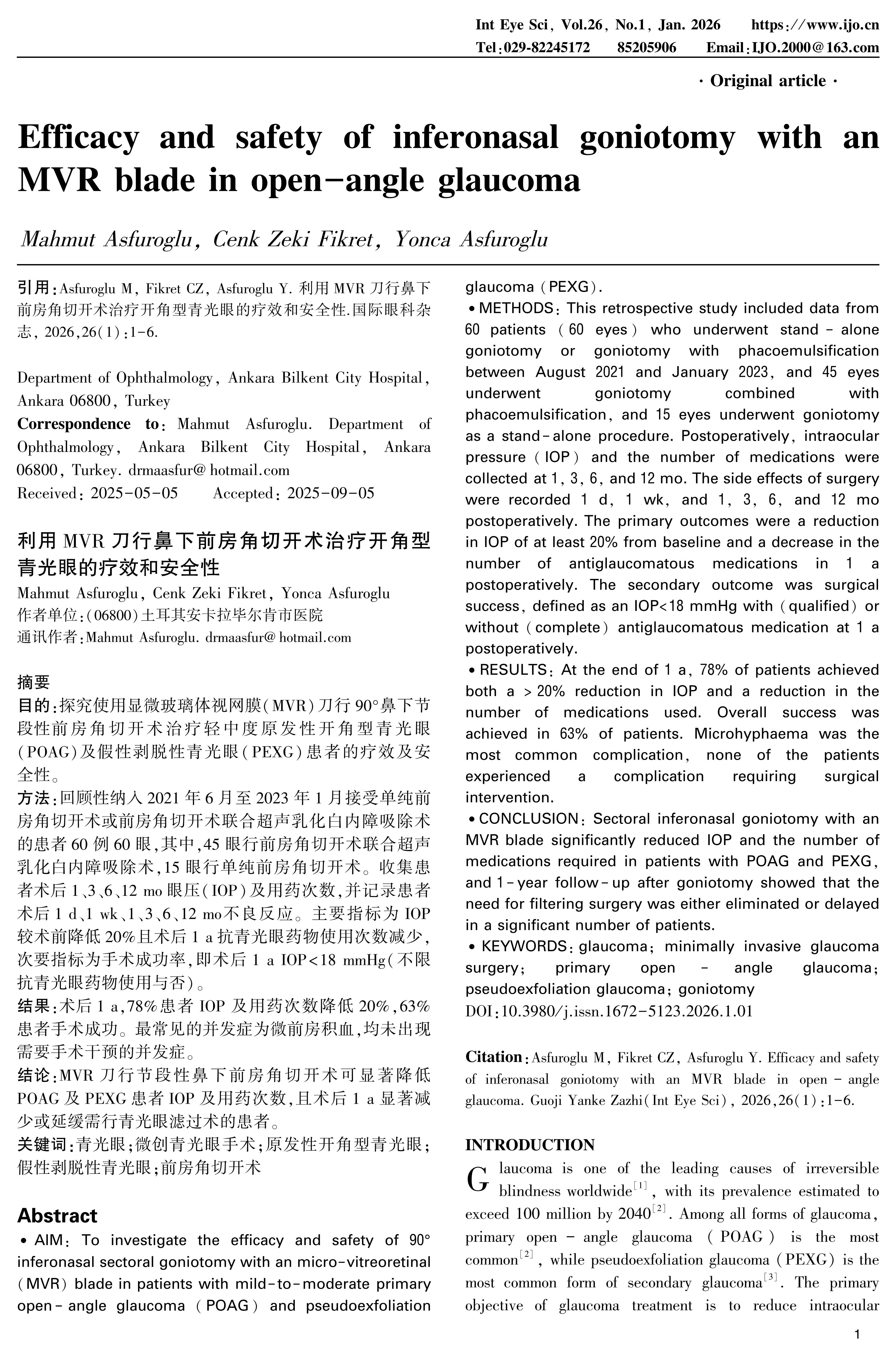 利用MVR刀行鼻下前房角切开术治疗开角型青光眼的疗效和安全性